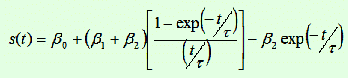 Dependiendo del valor de los parámetros, la ecuación anterior puede tomar las diferentes formas que más comúnmente toma la estructura de tasas. Entre las formas que pueden tomar las curvas se encuentran curvas monótonas crecientes, en formas de S o en forma de U invertida. Integrando la ecuación que relaciona la tasa spot y la tasa forward que se presentó anteriormente se obtiene la siguiente expresión para la tasa spot (s(t)):