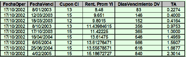2. Operaciones a utilizar en el procedimiento de estimación de la curva cero cupón