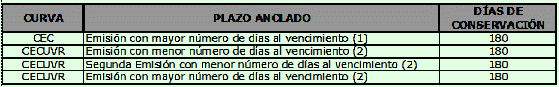 3.14 Días de Conservación de un anclaje: Máximo de días de permanencia de un anclaje en ausencia de operaciones en el día de estimación de la curva.