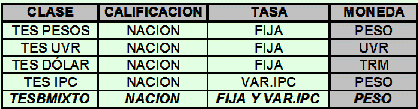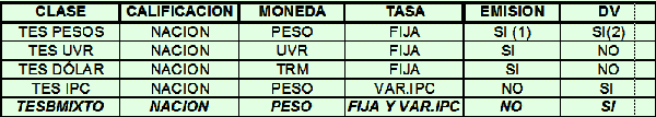 (1) Emisiones de títulos TES Clase B totales, moneda pesos, tasa Fija Simple. Los días al vencimiento se calcularán en base 365.