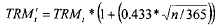 Donde TRMt corresponde a la tasa de cambio vigente en la fecha de cálculo y n corresponde al número de días corrientes entre la fecha de cálculo y el 31 de diciembre de 2015.