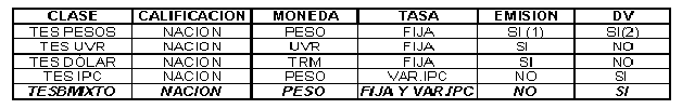 (1) Emisiones de títulos TES Clase B totales, moneda pesos, tasa Fija Simple. Los días al vencimiento se calcularán en base 365.