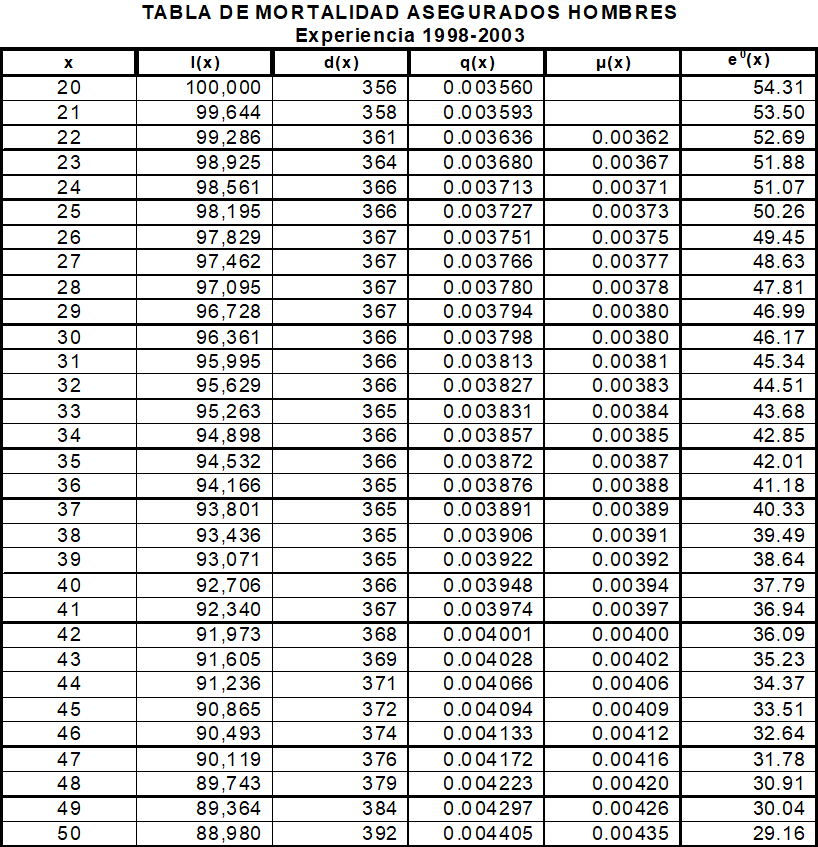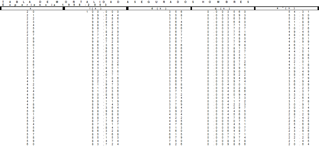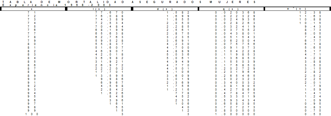 TABLAS COLOMBIANAS DE MORTALIDAD DE LOS ASEGURADOS