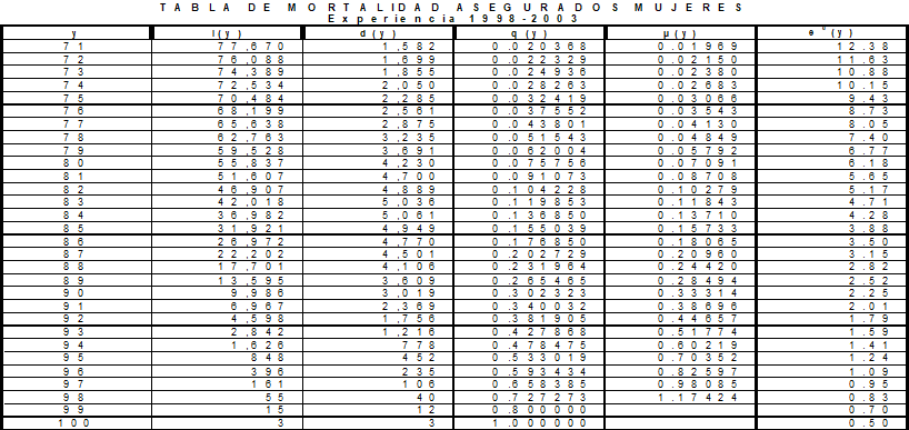 SEXTO: Que con base en un estudio inicial de FASECOLDA presentado mediante comunicación 2006045263-000-000 del 23 de agosto de 2006, esta Superintendencia ha elaborado nuevas tablas de mortalidad de los asegurados, discriminadas por sexo, tomando la experiencia obtenida por las entidades que comercializan el seguro de vida individual en Colombia en el período 1998-2003.