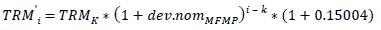 Donde TRMk corresponde a la tasa de cambio del último año proyectado en el MFMP (año k), siendo i un periodo no cubierto por el MFMP respectivo.