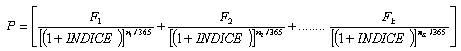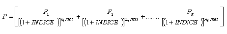 i: Tasa convertida porcentual a la modalidad y periodicidad de pago del título.