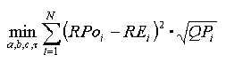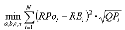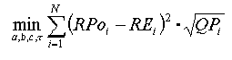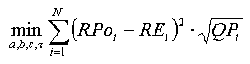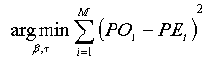 Este método se lleva a cabo minimizando la suma de los errores cuadráticos entre los precios observados y estimados de los precios de la siguiente forma: