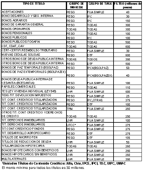 2.1 Se incluyen las operaciones con TES B tasa fija en pesos, para CEC pesos y TES B tasa fija en UVR, para CEC UVR.