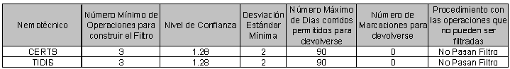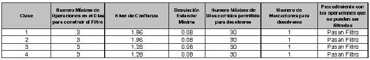 Para la conformación de la muestra de operaciones para los cálculos se tendrán en cuenta las siguientes consideraciones: