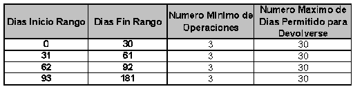 3.14 Días de Conservación de un anclaje: Máximo de días de permanencia de un anclaje en ausencia de operaciones en el día de estimación de la curva.