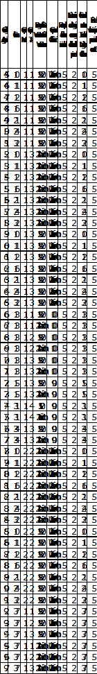 Tabla de parámetros para el cálculo de Puntos Sintéticos.