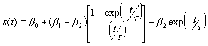 Dependiendo del valor de los parámetros, la ecuación anterior puede tomar las diferentes formas que más comúnmente toma la estructura de tasas. Entre las formas que pueden tomar las curvas se encuentran curvas monótonas crecientes, en formas de S o en forma de U invertida. Integrando la ecuación que relaciona la tasa spot y la tasa forward que se presentó anteriormente se obtiene la siguiente expresión para la tasa spot (s(t)):