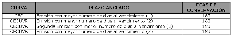 Para los casos en que no se cuente con emisiones suficientes que garanticen la obtención de información en plazos específicos de la curva CECUVR, se procederá a obtener información mediante la metodología estipulada en el Anexo 2.