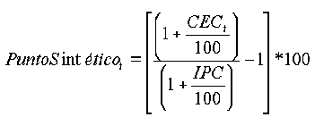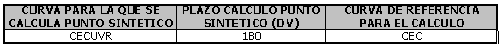 Para la obtención de información en plazos específicos en donde no se cuente con referencias de de mercado en la curva CECUVR, se procederá a obtener información mediante el cálculo de puntos sintéticos. Dichos puntos se obtendrán aplicando la siguiente formula: