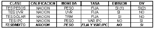 (1) Emisiones de títulos TES Clase B totales, moneda pesos, tasa Fija Simple. Los días al vencimiento se calcularán en base 365.