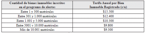 PARÁGRAFO 2o. En caso de uso del servicio de alertas tempranas de forma masiva, se aplicará la siguiente tabla de rangos y tarifas: