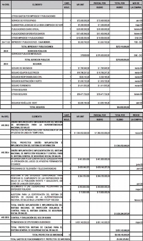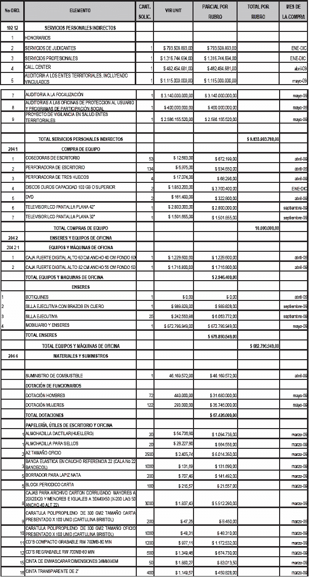 Por la cual se actualiza el Plan de Compras de la Superintendencia Nacional de Salud para la vigencia fiscal 2009.