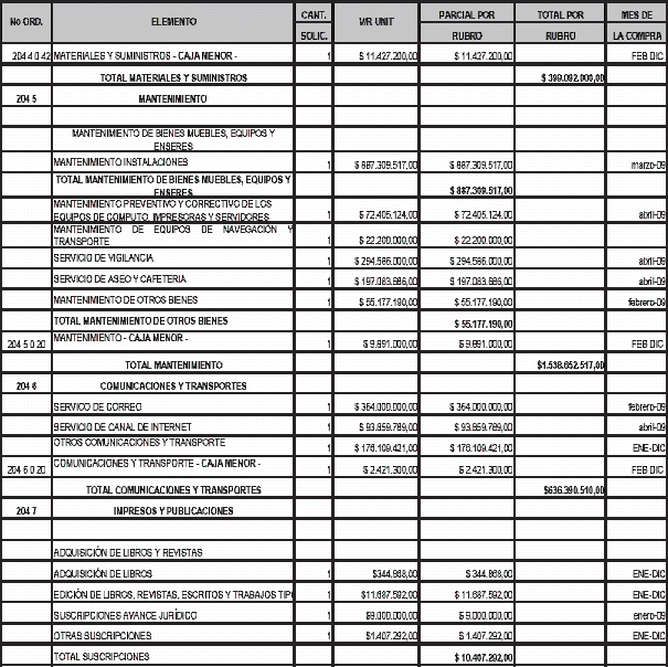 Que el Acuerdo número 004 de 14 de abril de 2005 expedido por el Comité para la operación del SICE, en su artículo 1o establece como Plan de Compras el “Plan de bienes, servicios y obra pública de las entidades y particulares que manejan recursos públicos, independientemente del rubro presupuestal que se afecte, ya sea de funcionamiento o de inversión”.