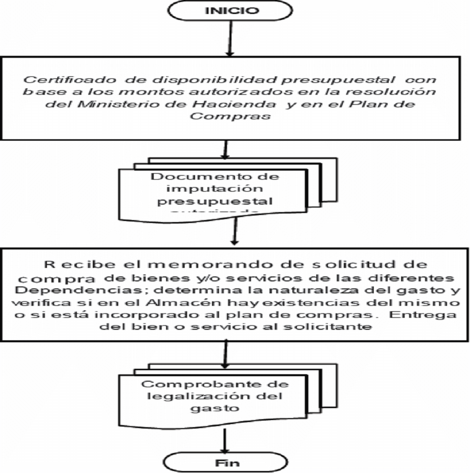 | 4 | Recursos Físico | Funcionario responsable | De acuerdo a la solicitud determina la naturaleza del gasto y verifica si en el Almacén hay existencias del mismo o si está incorporado al plan de compras. | |