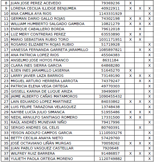 ARTÍCULO 1o. Conformar el listado definitivo de inscritos como personas naturales en el Registro de Interventores, Liquidadores y Contralores (Rilco) de la Superintendencia Nacional de Salud, una vez surtido el proceso de inscripción de que trata la Resolución número 2599 de 2016, asi: