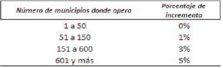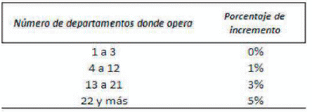 | Número de sedes | Porcentaje de incremento |