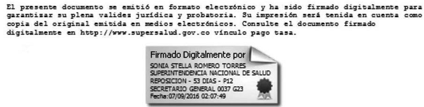 LA SECRETARIA GENERAL DE LA SUPERINTENDENCIA NACIONAL DE SALUD,