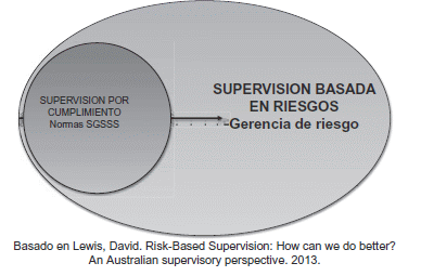 Bajo el enfoque tradicional de Supervisión Basada en Cumplimiento (SBC), las entidades vigiladas deben cumplir con una serie de normas y reglas prudenciales establecidas en la ley y/o en la legislación secundaria. En este contexto, el papel de la autoridad de supervisión se limita a verificar que los agentes supervisados cumplan con los estándares mínimos establecidos en las normas prudenciales. Esto se ha venido complementando con un enfoque que da prioridad a una atencion proactiva en la que prima "la detección temprana y la evaluación de los riesgos a los que se exponen las entidades para generar medidas correctivas oportunas"(Barrios Figueroa, Noviembre de 2011)