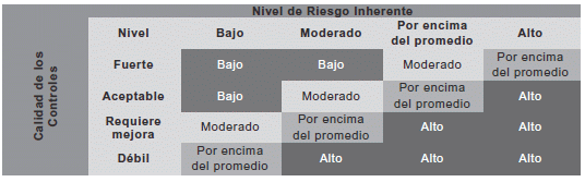 La SNS generará metodologías que permitan valorar esta relación de acuerdo con los hallazgos de la medición de los riesgos inherentes y la medición de la calidad de los controles, resumidas de la siguiente forma: