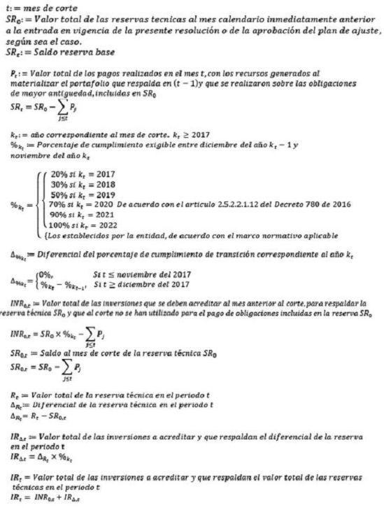 Así mismo, los pagos a que hace referencia el artículo cuarto de la presente resolución, NO constituyen inversión computable de la Reserva Técnica, únicamente se tienen en cuenta para la verificación de cumplimiento de los plazos establecidos en el artículo 2.5.2.2.1.12 del Decreto número 780 de 2016 -en concordancia con los Decretos números 2117 de 2016 y 718 de 2017- y demás normas que lo modifique o adicione, en lo relacionado con el régimen de inversión de las reservas técnicas.