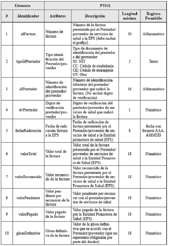 Asimismo, las entidades vigiladas deberán reportar por una sola vez, a través del Sistema de Recepción y Validación de Archivos de la Superintendencia Nacional de Salud y en formato XML, el detalle de las facturas incluidas en la reserva de obligaciones conocidas del mes calendario inmediatamente anterior a la entrada en vigencia de la presente resolución o de la aprobación del plan de ajuste, según sea el caso, de conformidad con el archivo tipo PT011 Detalle facturas incluidas en la reserva de obligaciones conocidas, el cual hace parte integral de la presente resolución.