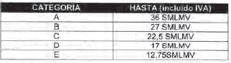| CATEGORÍA | HASTA (incluido IVA) |