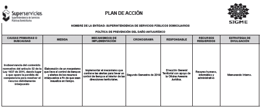 En cumplimiento de lo anterior, la SSPD envió oportunamente la política de prevención del daño antijurídico vigencia 2019 a la ANDJE, en el mes de diciembre de 2018, para aprobar la aplicación de su metodología: en esta política de prevención.
