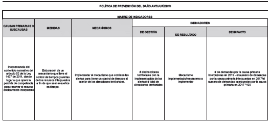 Para esta política, se formularon los tres indicadores propuestos por la ANDJE, siendo estos los siguientes:
