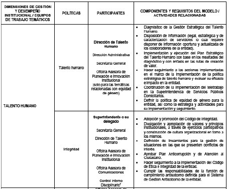 Considerando además, la actualización, el estudio y la apropiación del Sistema de Gestión y del MIPG por parte de la Superservicios, se hace necesaria la expedición de un nuevo acto administrativo que permita la implementación del modelo, en todas sus dimensiones y tomando en consideración todas las políticas enlistadas en el Decreto número 1499 de 2017, y aquellas incorporadas en el Decreto número 1299 de 2018 y en el Decreto número 454 de 2020, de acuerdo con la estructura, atribuciones y funcionamiento de la Entidad.