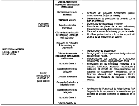 7. Las demás que tengan relación directa con la implementación, desarrollo y evaluación del Modelo Integrado de Planeación y Gestión.