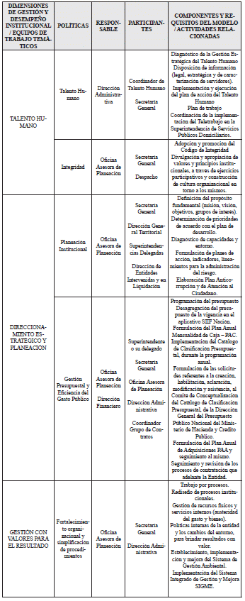 Que el estudio y apropiación del Sistema de Gestión y del MIPG actualizado, por parte de la Superservicios, hace necesaria la expedición de un nuevo acto administrativo, que permita la implementación del modelo, en todas sus dimensiones y tomando en consideración todas las políticas enlistadas en el Decreto número 1499 de 2017, de acuerdo con la estructura, atribuciones y funcionamiento de la Entidad.