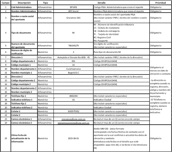 2. Cada registro del reporte enviado corresponde a todos los datos de ubicación o contacto de un aportante. Esto significa que solo debe existir un registro por cada aportante.