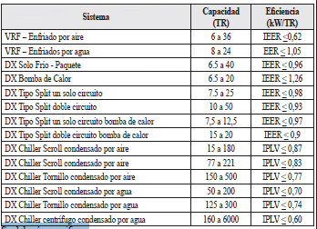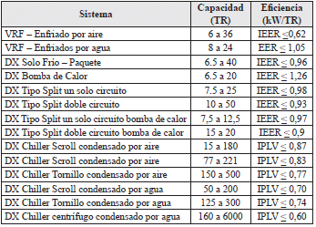 La tabla descrita a continuación muestra los valores de referencia exigidos bajo condiciones de operación AHRI (Air-Conditioning, Heating, and Refrigeration Institute). Se tendrán en cuenta de igual manera las eficiencias demostradas por los equipos bajo condiciones reales de operación, tomando como referencia el ASHRAE Temperature Bin Methode en su versión más reciente o información climática de otro organismo reconocido internacionalmente. Los equipos deberán tener certificación AHRI que respalde sus eficiencias o certificación equivalente. ![]() Se deberá especificar: • Marca y modelo/referencia del equipo • Tipo de equipo • Tipo de compresor (hermético, semihermético, scroll, tornillo, centrífugo) • Sistema de enfriamiento (por aire, por agua) • Potencia frigorífica del equipo de refrigeración (kWt, TR o BTU/h) • Eficiencia (rango de clasificación RETIQ, EER (Energy Efficiency Ratio), IEER (Integrated Energy Eficiency Ratio) o IPVL (Integrated Part Load Value)) Refrigeración. Incluye unidades semicompactas, compactas, racks y chillers. Se deberán especificar los siguientes aspectos, según corresponda: • Tipo de sistema de refrigeración (unidad semicompacta, unidad compacta, rack de refrigeración, chiller eléctrico, chiller de absorción) • Marca y modelo/referencia del sistema de refrigeración • Tipo de compresor (hermético, semihermético, scroll, tornillo, centrífugo) • Sistema de enfriamiento (por aire, por agua) • Número de compresores • Rango de temperatura de operación del equipo de refrigeración (°C) • Potencia frigorífica del equipo de refrigeración (kWt, TR o BTU/h) • Volumen a refrigerar (m3) • COP (Coefficient of Performance) Iluminación. Incluye luminarias de tecnología LED para iluminación interior o exterior y equipos de control. Solo se admitirán solicitudes a partir de una potencia instalada en iluminación de 5 kW. Las fuentes luminosas deben cumplir las siguientes características técnicas: • Eficacia luminosa: 90 lm/W o superior para iluminación interior y 130 lm/W o superior para iluminación exterior • Vida útil: al menos 25.000 horas • Factor de potencia: = 0.9 • THD: < 20% Se deberá indicar marca y modelo/referencia de la(s) fuente(s) de iluminación. Los diseños y rediseños correspondientes deben cumplir con lo indicado en el RETILAP. Para el efecto, se deberán adjuntar las salidas del software de diseño del proyecto específico. Para los sistemas de control se consideran atenuadores (dimmers), sensores de ocupación, fotoeléctricos y de tiempo y balastos multitensión. Se deberá especificar: • Marca y modelo/referencia del equipo • Tipo de equipo | |