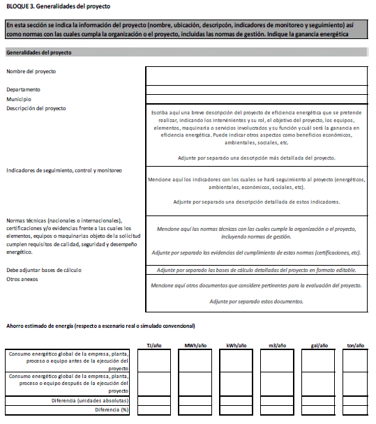 c) La descripción general del proyecto incluyendo la localización, la explicación de los procesos sobre los cuales se realizarán las actividades de eficiencia energética o reducción del consumo, los indicadores con los cuales se hará seguimiento y las bases o memorias de cálculo, de conformidad el Anexo número 3 de la presente resolución.