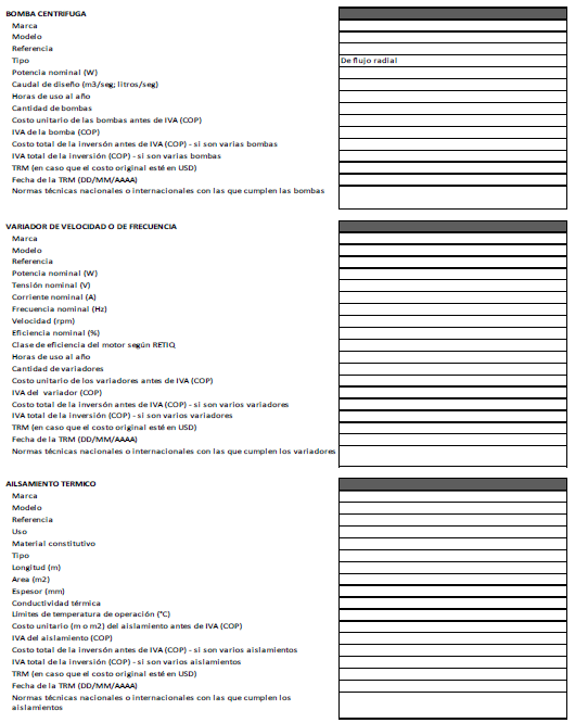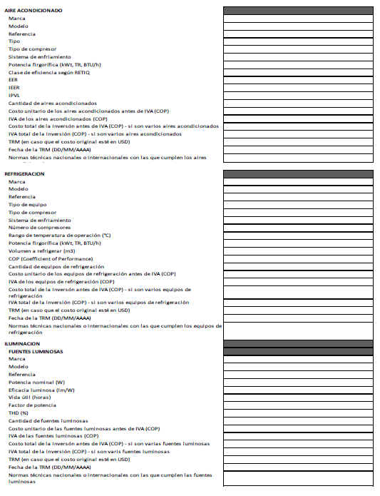 Dicha matriz debe incluir los consumos mensuales de todos los energéticos, con la finalidad de realizar el cálculo de los ahorros que se pretenden con el proyecto y cuantificar el aporte a las metas de eficiencia energética del Plan de Acción Indicativo PAI 2017-2022 que fueron concertadas en las Resoluciones MME-MADS-MHCP 1988 de 2017 y MME-MADS-MHCP 0367 de 2018.