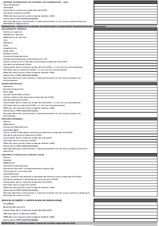 d) La descripción detallada de las inversiones incluyendo los elementos, equipos o servicios, su función, sus características técnicas, sus costos (discriminando el IVA) y las normas técnicas frente a las cuales cumplen requisitos de calidad y desempeño energético y/o los certificados correspondientes, de conformidad con el Anexo número 4 de la presente resolución.