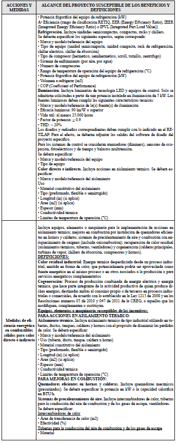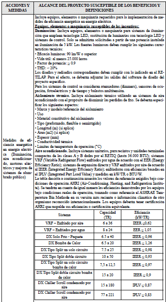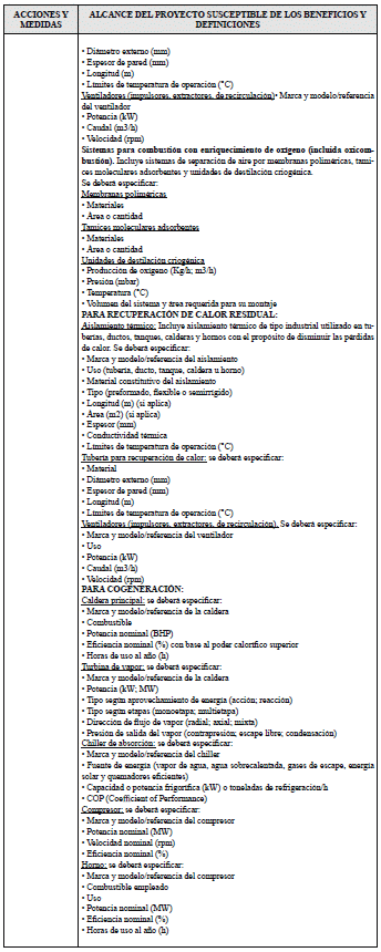 TABLA 1. ALCANCE DE LOS PROYECTOS SUSCEPTIBLES DE LOS BENEFICIOS